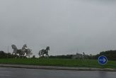 Nous rencontrons un rond point avec des chevaux. On ne résiste pas à le prendre en photo!